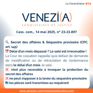 📍Le saisi 𝐧’𝐞𝐬𝐭 𝐩𝐥𝐮𝐬 𝐫𝐞𝐜𝐞𝐯𝐚𝐛𝐥𝐞 à invoquer le secret des affaires pour s’opposer à la transmission des pièces, 𝐥𝐨𝐫𝐬𝐪𝐮’𝐢𝐥 𝐧’𝐚 𝐩𝐚𝐬 𝐝𝐞𝐦𝐚𝐧𝐝𝐞́ 𝐥𝐚 𝐦𝐨𝐝𝐢𝐟𝐢𝐜𝐚𝐭𝐢𝐨𝐧 𝐨𝐮 𝐥𝐚 𝐫𝐞́𝐭𝐫𝐚𝐜𝐭𝐚𝐭𝐢𝐨𝐧 𝐝𝐞 𝐥’𝐨𝐫𝐝𝐨𝐧𝐧𝐚𝐧𝐜𝐞 𝐝𝐚𝐧𝐬 𝐥𝐞 𝐝𝐞́𝐥𝐚𝐢 𝐝’𝐮𝐧 𝐦𝐨𝐢𝐬.