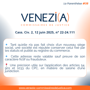 🔹 Tant qu’elle n’a pas fait choix d’un nouveau siège social, une société est réputée conserver celui fixé par les statuts et publié au registre du commerce.